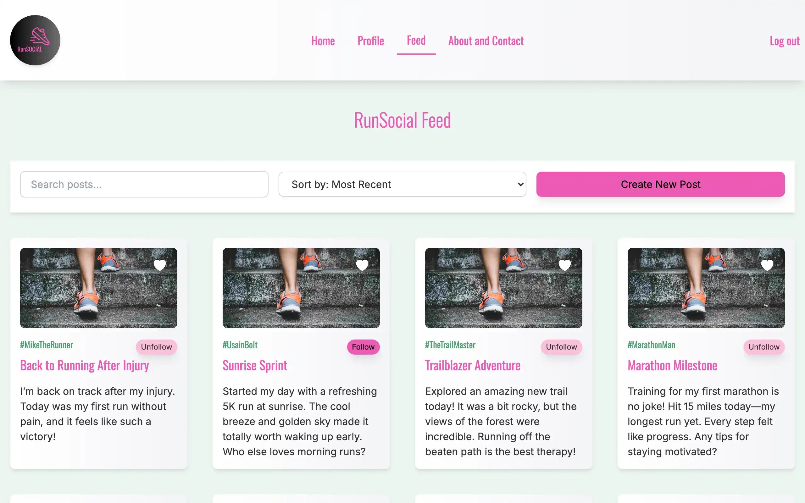 Overview: RunSocial is a lightweight, responsive UI built with Tailwind CSS. It includes Auth, Feed, and Profile screens. Role: solo developer.